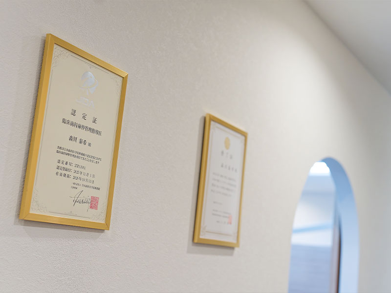 日本口腔外科学会 認定医として、難症例の外科治療にも対応できる体制を整え、専門的な知識と技術に基づいた歯科診療を行っています。