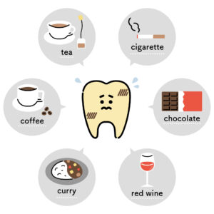 外因性の黄ばみとは、食べものや飲みものなどが原因で起こる歯の着色を指します。